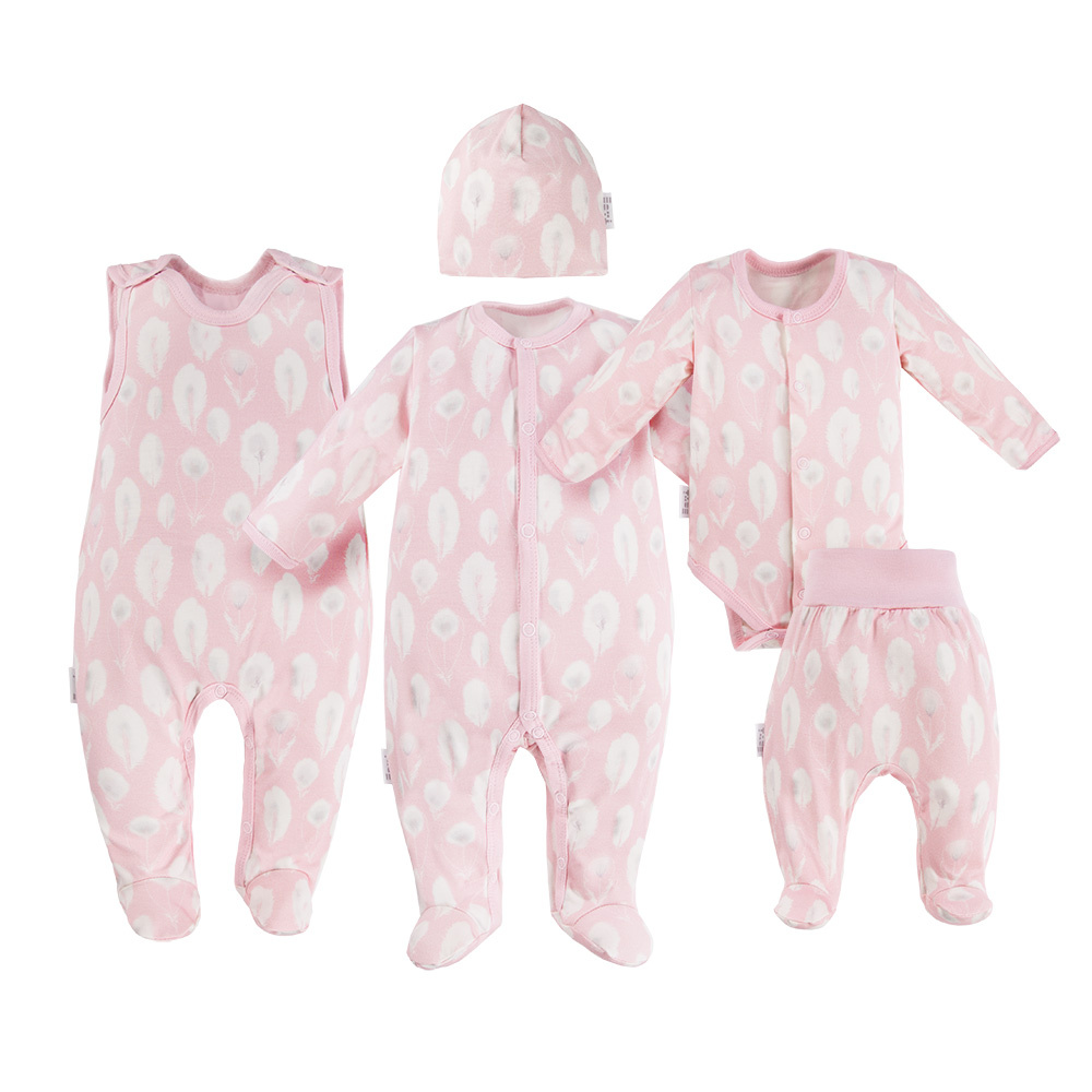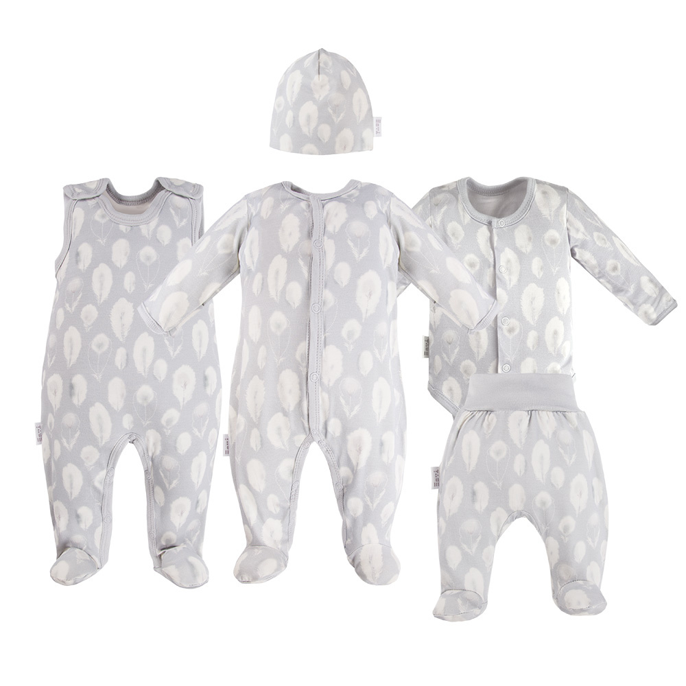 Komplet niemowlęcy uszyty z miękkiej i przyjemnej w dotyku wiskozy bambusowej. Krój umożliwia całkowite rozpięcie, przez co ubranko jest funkcjonalne i wygodne. Komplety niemowlęce idealnie sprawdzają się w pierwszych miesiącach życia dziecka i tworzą idealny zestaw wyjściowy.