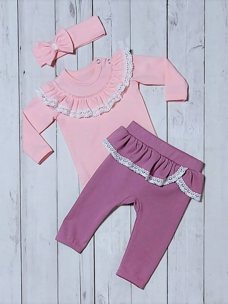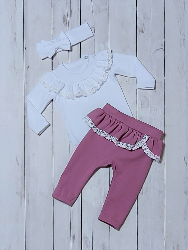 Gumka w pasie zapewnia odpowiednią przyczepność, jednocześnie zachowując komfort dziecka. Swobodny krój spodni zapewni maluszkowi wygodę noszenia podczas zabawy i innych codziennych aktywności. Idealne w zestawieniu body Eliza i opaską Eliza.