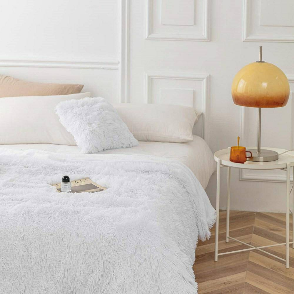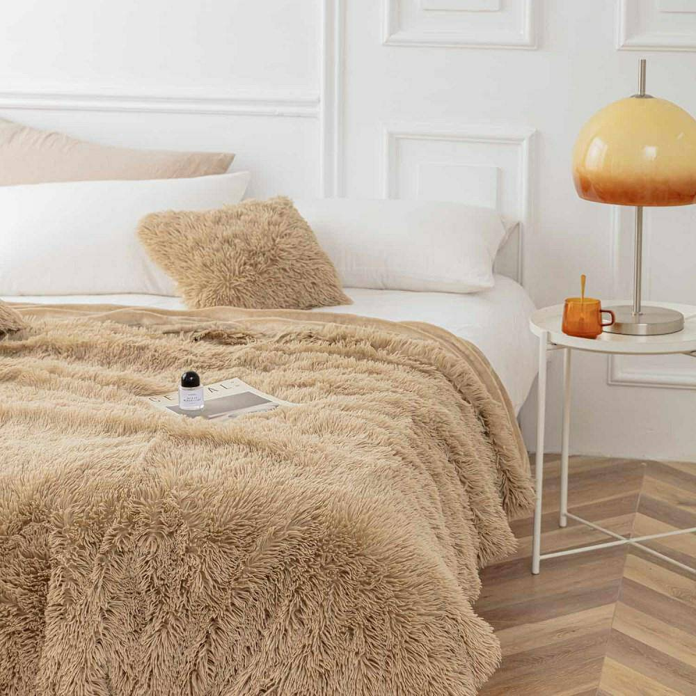 Yeti Koc narzuta włochacz futrzak fotelówka Spod Igły i Nitki pudrowy