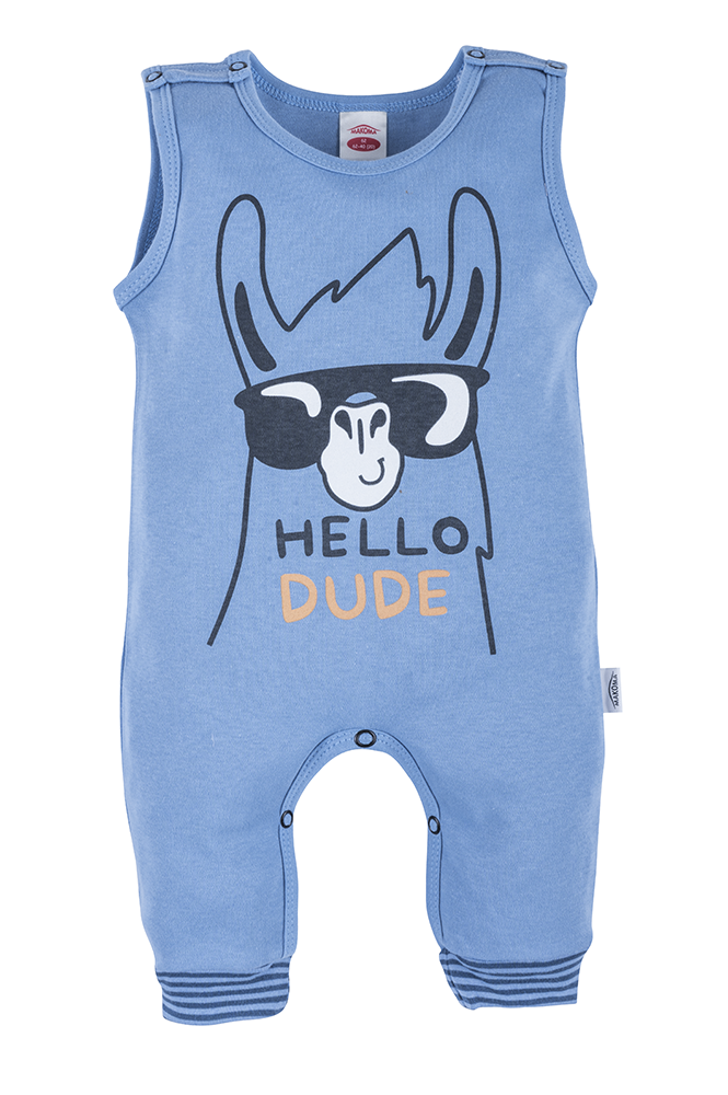 Ogrodniczki niemowlęce z kolekcji "Hello Dude" uszyte z miękkiej i przyjemnej w dotyku dzianiny bawełnianej.