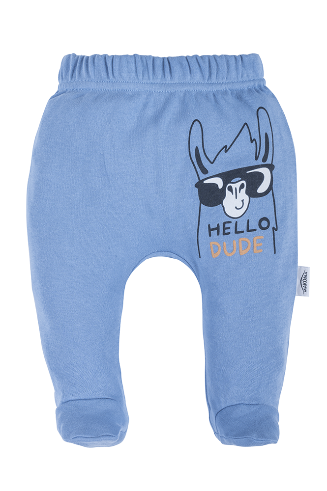 Półśpiochy wykonane z wysokogatunkowej bawełny. Wykończone szerokim pasem z bawełnianego ściągacza, który nie uciska brzuszka dziecka. Ubranko idealnie pasuje do wszystkich rodzajów bodów z kolekcji Hello Dude.