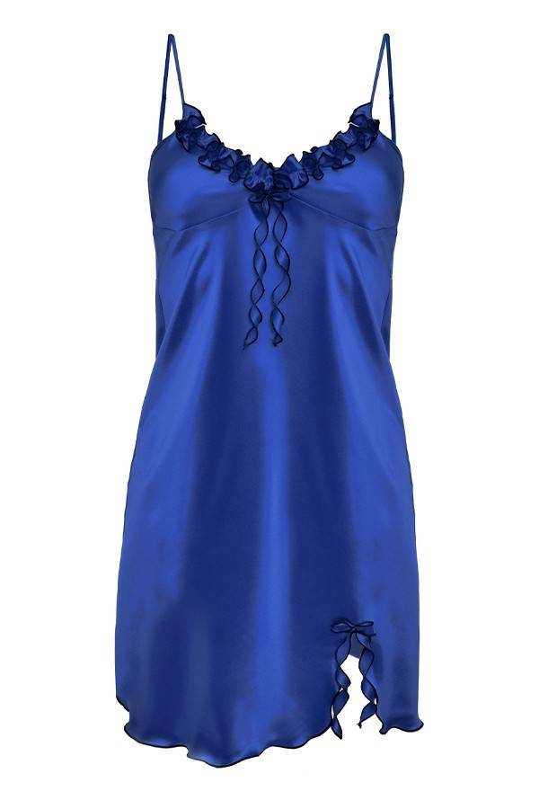 Zmysłowa i romantyczna satynowa haleczka firmy DKaren, przód halki tworzą profilowane i laminowane miseczki.