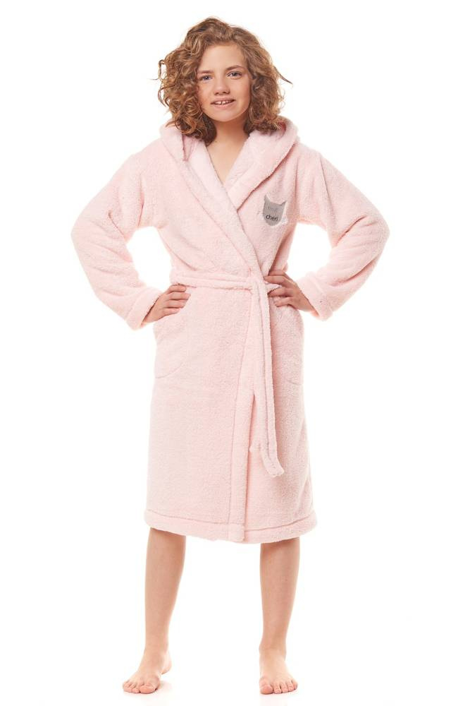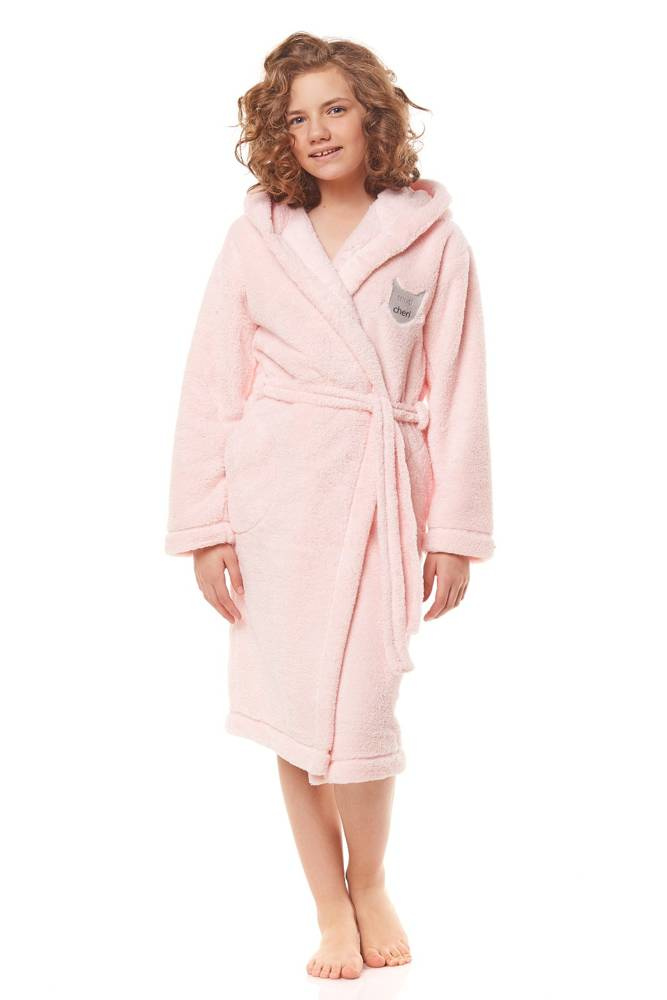 Szlafrok dziecięcy z kapturem, wiązany w pasie.