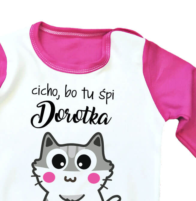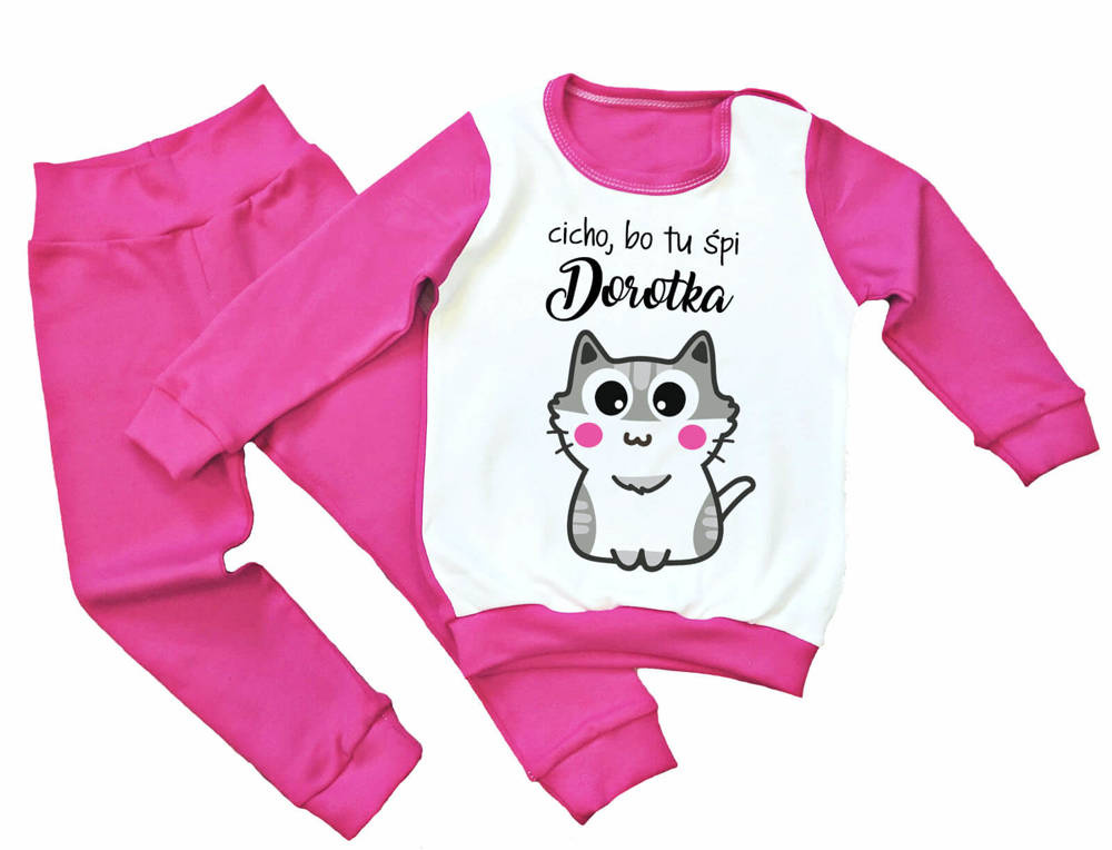 Wygodna piżama z wysokiej jakości, wyjątkowo miłej i miękkiej bawełny. Koszulka z długim rękawem, ozdobna nadrukiem. Spodnie długie, jednolite. Dekolt, mankiety, dół koszulki i nogawki zakończone wygodnym ściągaczem. W UWAGACH PROSZĘ PODAĆ IMIĘ DZIECKA.