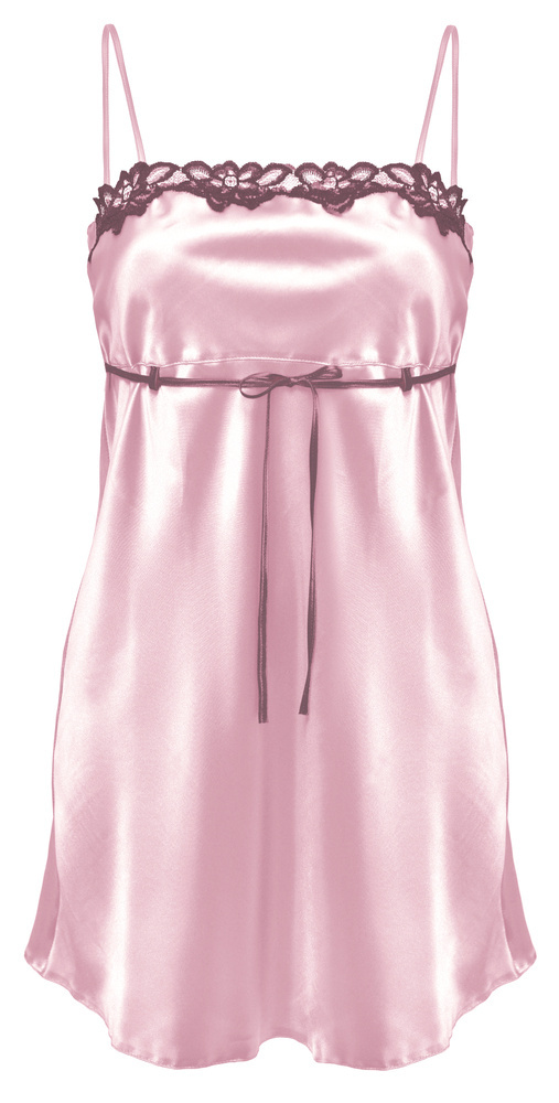 Zmysłowa satynowa haleczka, z ozdobnym przodem z czarnej koronki, pod biustem wiązana kokardką.