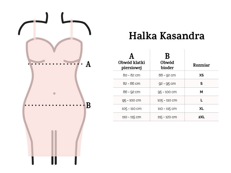 Ramiączka cienkie i regulowane dzięki którym można uzyskać odpowiednio odkryty dekolt oraz dopasować długość koszulki wedle swojego komfortu. Halkę wykonano z najwyższej jakości delikatnej szlachetnej satyny.
