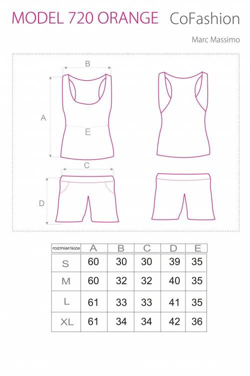 Komplet składa się z koszulki na ramiączkach oraz krótkich spodenek.