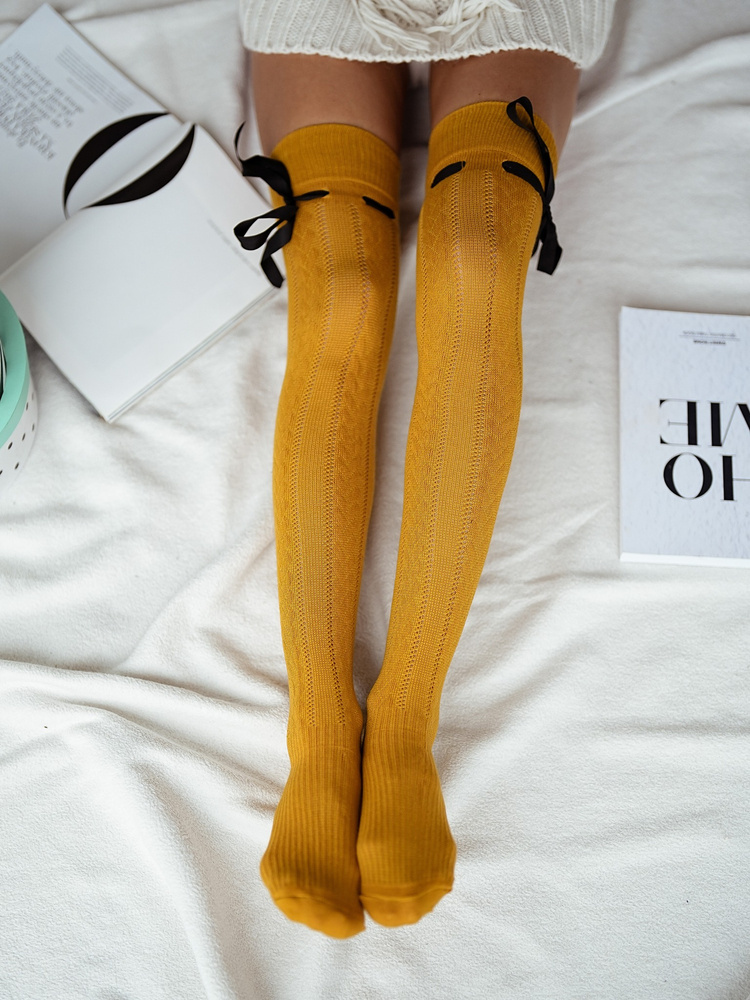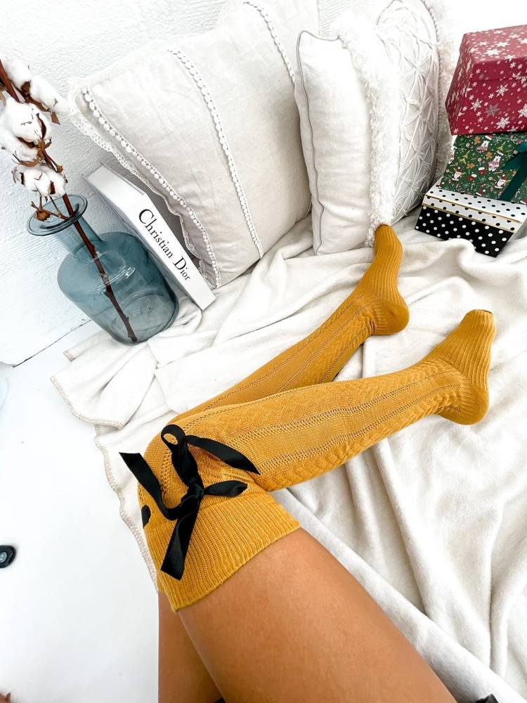 835 Wstążka Zakolanówki damskie Milena - miodowy