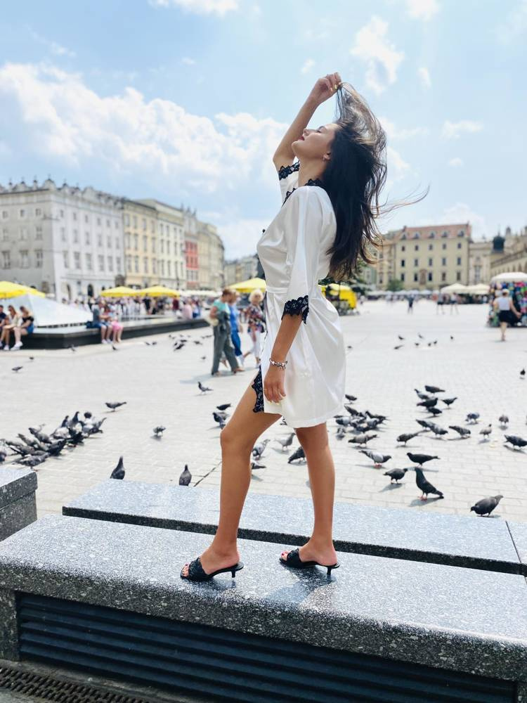 Ten model ma wszystkie cechy idealnej podomki – jest seksowny, wykonany z dobrej jakości materiału, a jego krój idealnie podkreśli każdą sylwetkę. Jeżeli lubisz zmysłowe szlafroczki, które delikatnie otulają Twoje ciało, a dotyk chłodnej satyny na rozgrzanej skórze to coś, co sprawia, że czujesz się luksusowo – koniecznie musisz wybrać naszą podomkę. Przód oraz szerokie rękawy obszyte są wysokiej jakości koronką, która tworzy niepowtarzalny efekt. Gwarantujemy, że poczujesz się w niej bardzo kobieco i zmysłowo. Do szlafroczka dodany jest satynowy pas, który umożliwi Ci odpowiednią regulację i wyrówna Twoje proporcje.