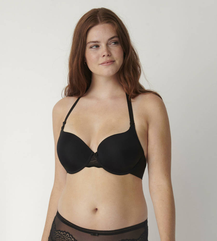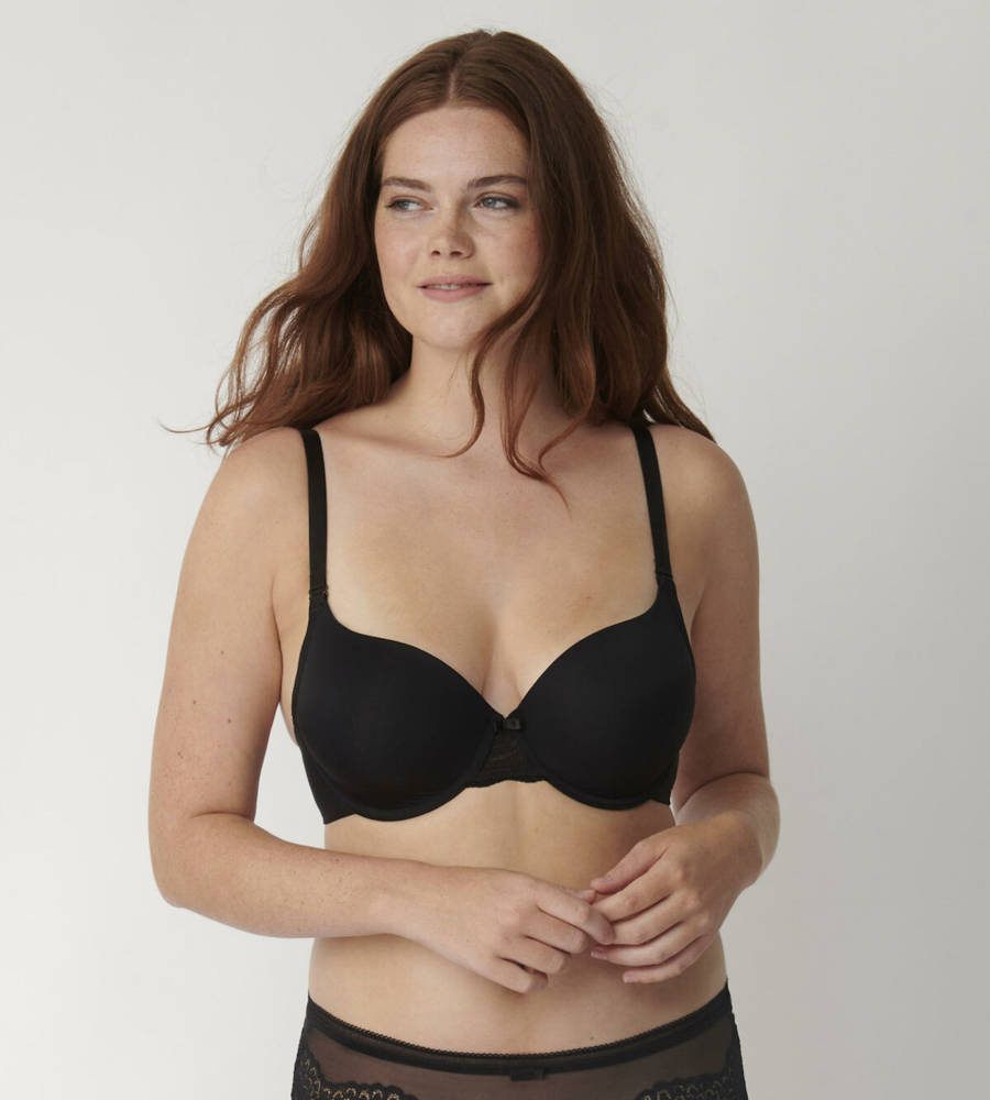 Szerszy mostek i ramiączka w przypadku większych rozmiarów miseczek, zapewniające idealne podtrzymanie. Boki i tył z dwuwarstwowego, delikatnego tiulu. Zapięcie na haftki, bez zawartości niklu. Wyprodukowano zgodnie ze standardem Öko-Tex 100.