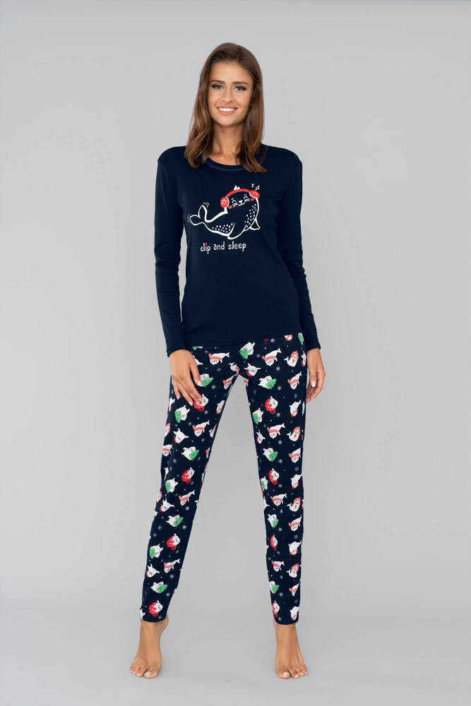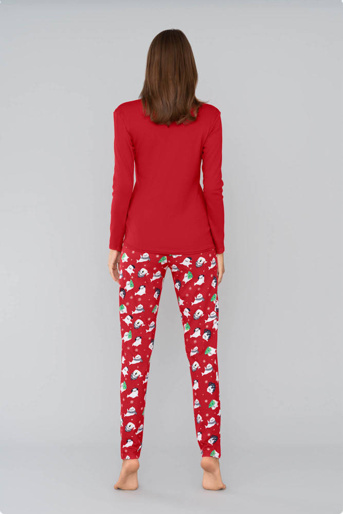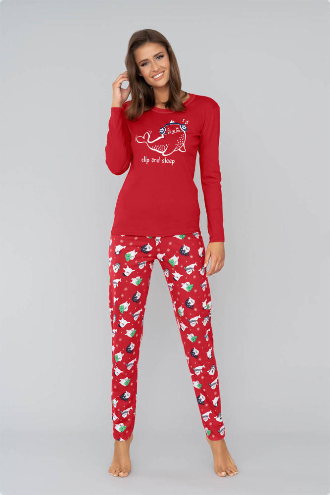 Kasjana Piżama Damska długi rękaw i spodnie talian Fashion- czerwony/druk czerwony