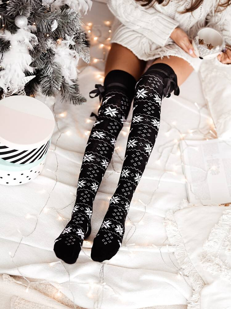 1139 Zakolanówki damskie świąteczne Milena czarny