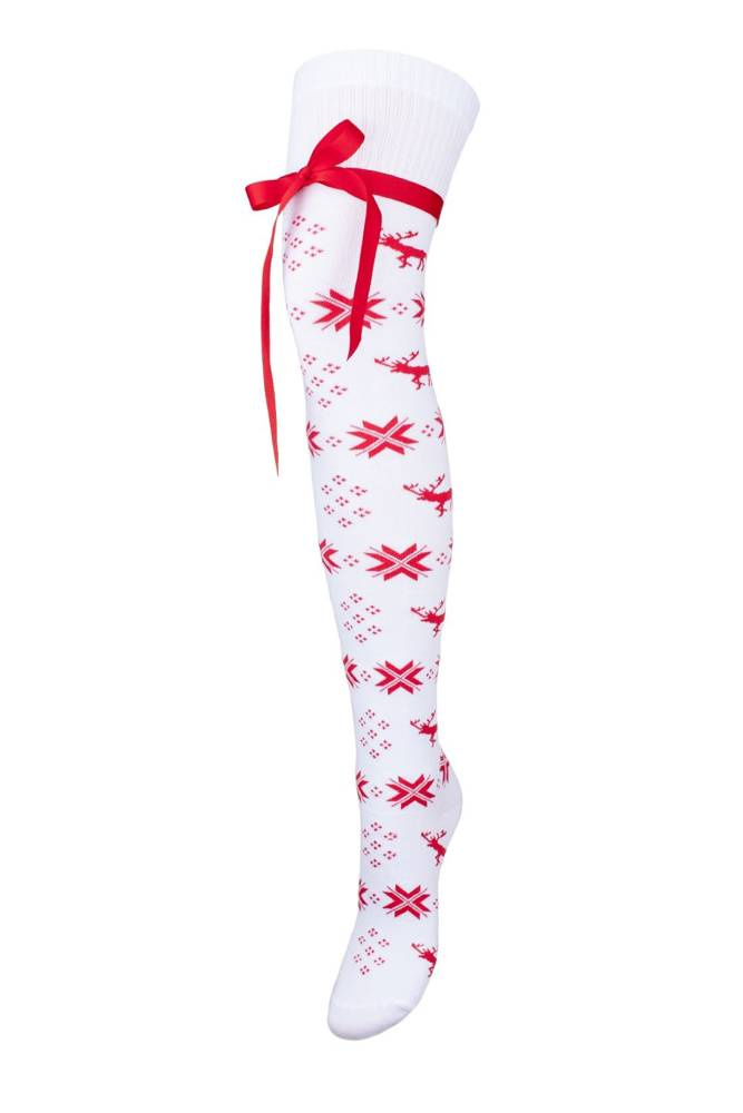 1139 Zakolanówki damskie świąteczne Milena biały czerwony