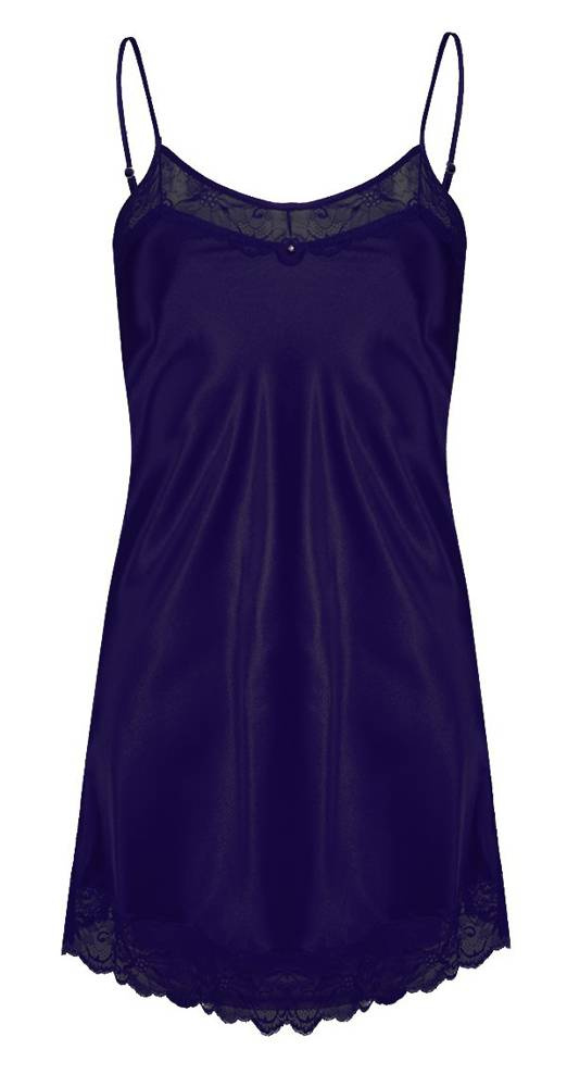 Efektowna koszulka damska z delikatnej i przyjemnej dla ciała satyny na cienkich ramiączkach. Z pozoru prosta, lecz tak naprawdę jest bardzo wyrafinowaną bielizną. Dół koszulki oraz dekolt ozdobione są elegancką koronką. Na łączeniu miseczek znajduje się połyskujący element biżuteryjny. Skład: 100% poliester.