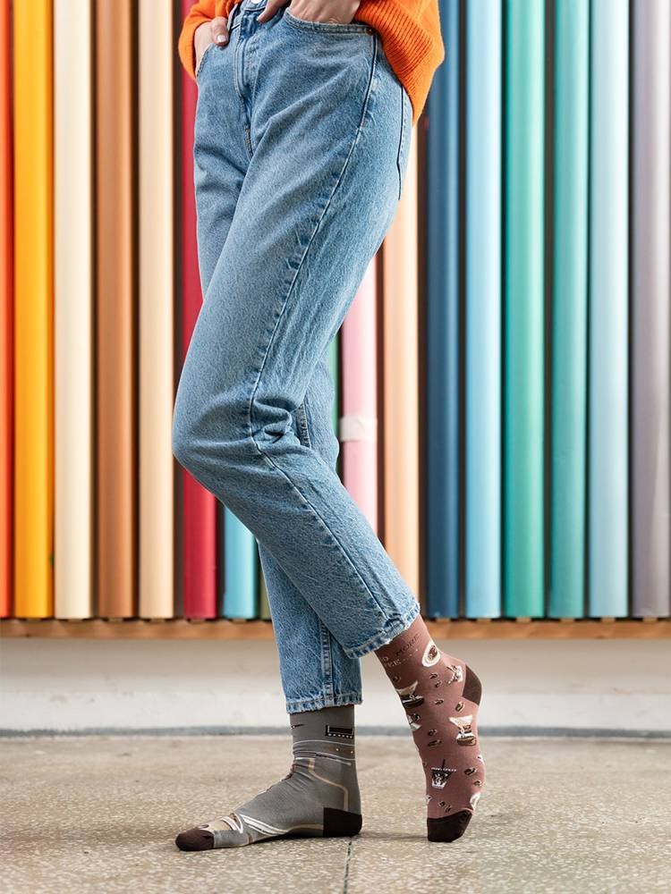 Skarpety damskie ozdobione różnorodnymi wzorami.