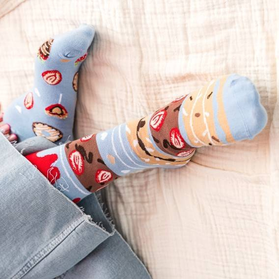 Skarpety damskie ozdobione różnorodnymi wzorami.
