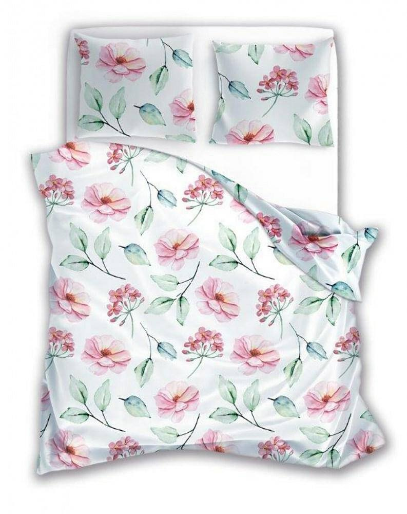 Eufloria 012 Pościel bawełniana kwiaty liście dwustronna Faro biały