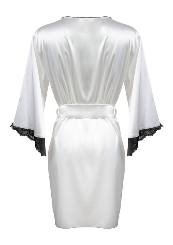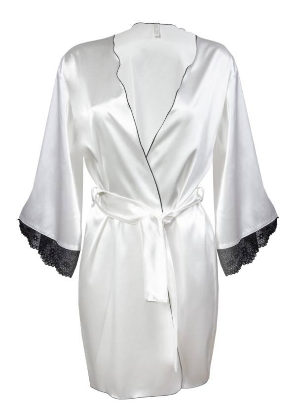 Podomka Ola to szlafroczek w kolorze jasnym ecru, wykonany z przyjemnej satyny. Brzegi szlafroczka są obszyte na czarno ponadto dopełnieniem są koronkowe wstawki na rękawach. Szukasz luksusowego szlafroka do noszenia po kąpieli lub po domu po ciężkim dniu pracy? Nie szukaj dalej niż nasz satynowy szlafrok. Wykonany z wysokiej jakości materiałów, zapewni Ci komfort i stylowy wygląd. Podomka Ola prezentuje się niezwykle elegancko. Ten szlafrok to doskonała propozycja po domu. Poczuj się jak hollywoodzka gwiazda! Satynowy szlafrok to luksus, na który Cię stać. Podomka doda Ci pewności siebie, będziesz czuła się niezwykle uwodzicielsko i pięknie.