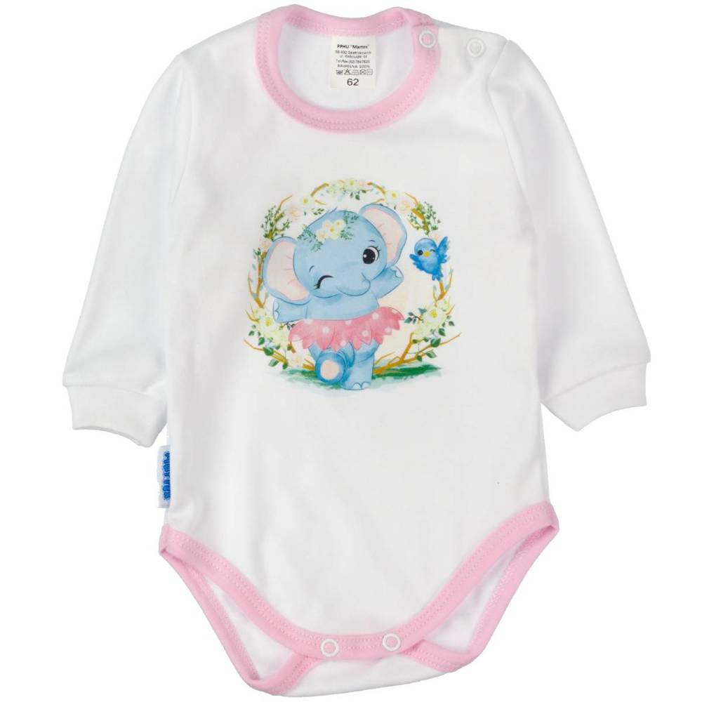Wesoły Słonik body niemowlęce długi rękaw Martex biały