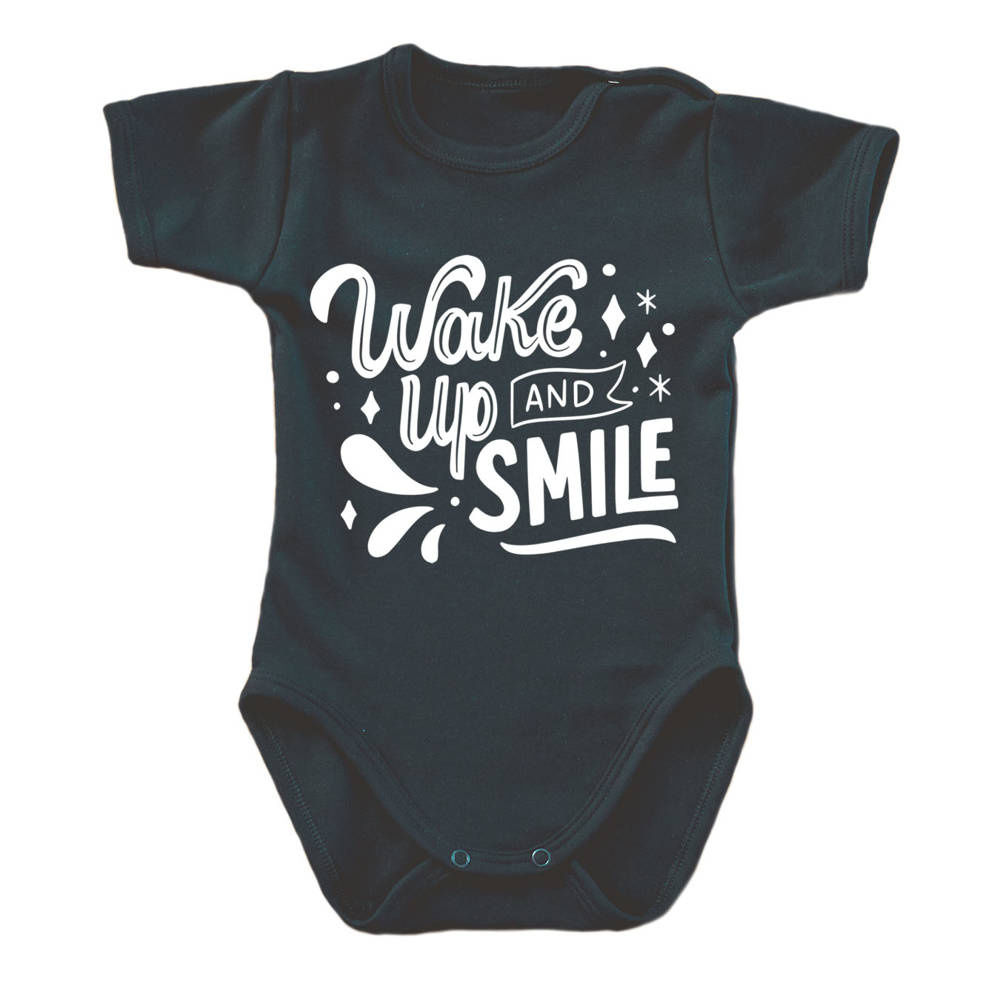 "WAKE UP AND SMILE" Body krótki rękaw Moocha czarny