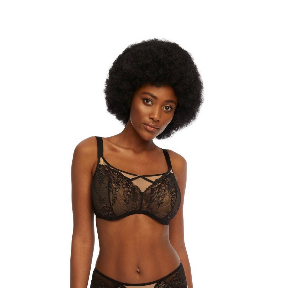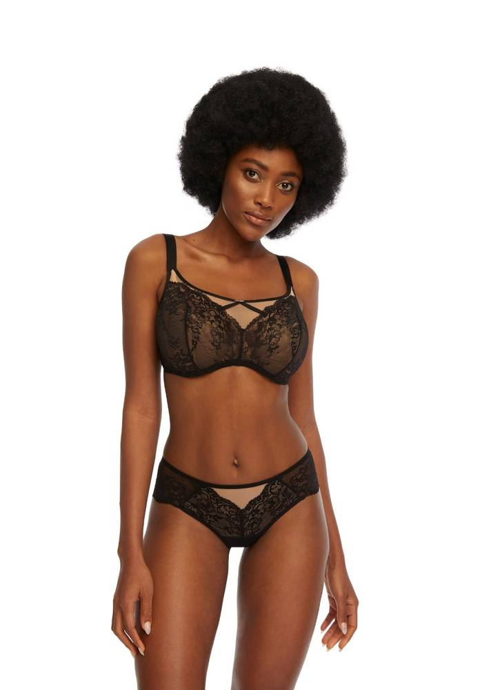 Zmysłowy miękki biustonosz wykonany z efektownej koronki, podszyty tiulową siateczką.