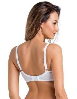 Miękki biustonosz Amelia w kolorze białym wykonany jest z wysokogatunkowego materiału z dodatkiem elastycznej, przyjemnej dla skóry koronki o pięknym motywie różanym.