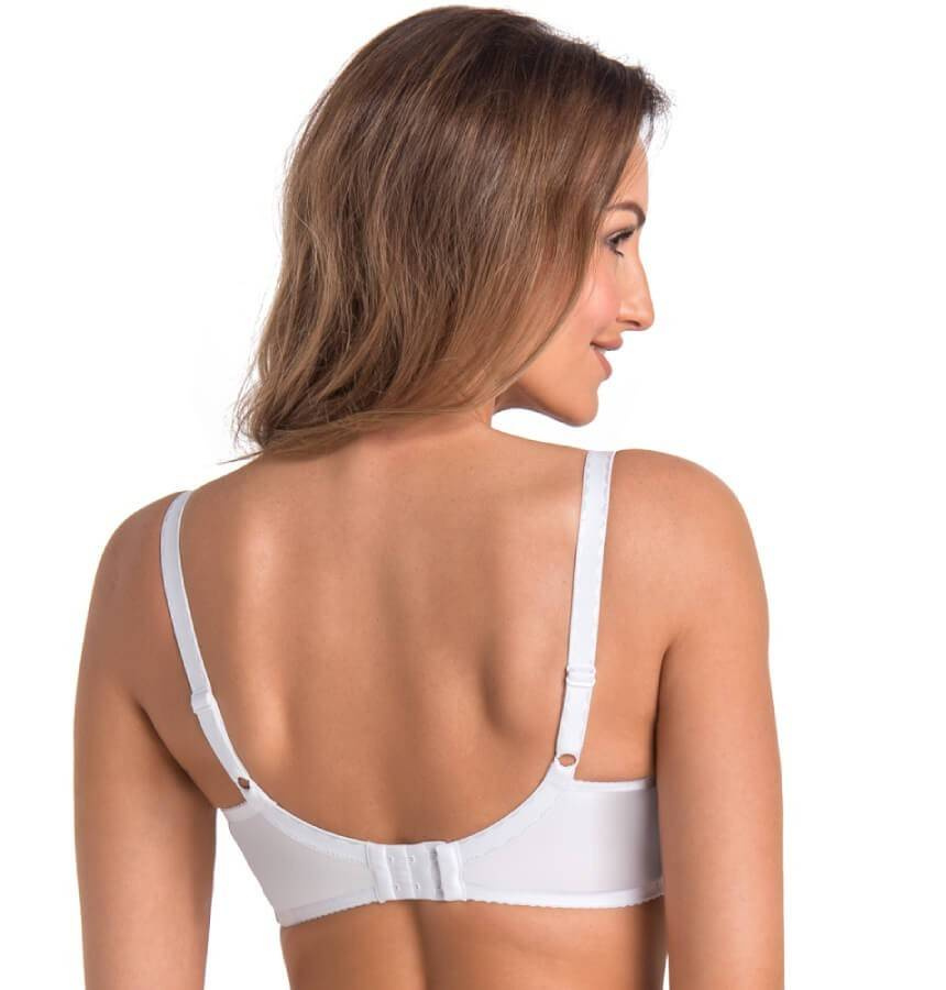 Zapięcie tylu na haftki dwu lub trzyrzędowe w zależności od wielkości rozmiaru. Szerokość ramiączek podobnie jak w przypadku zapięcia uzależniona jest od rozmiaru. Ramiączka w biustonoszu Marte są regulowane.