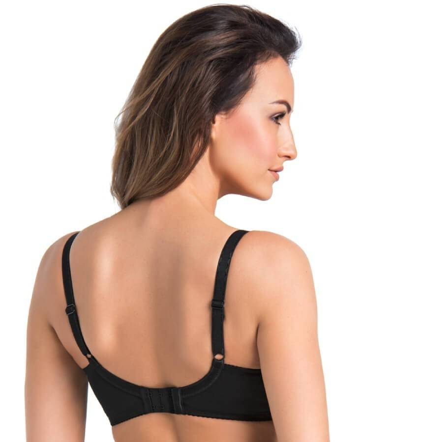 Zapięcie tylu na haftki dwu lub trzyrzędowe w zależności od wielkości rozmiaru. Szerokość ramiączek podobnie jak w przypadku zapięcia uzależniona jest od rozmiaru. Ramiączka w biustonoszu Marte są regulowane.
