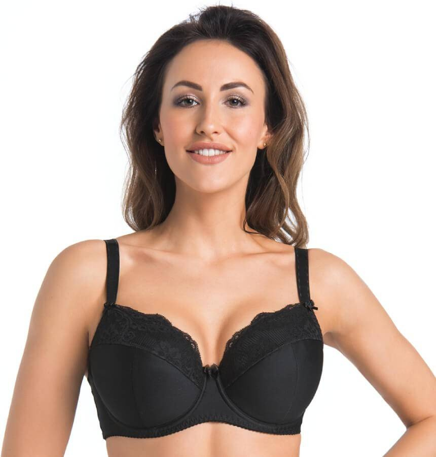 Biustonosz wykonany jest z materiału o wysokiej jakości, zdobiony na miskach koronką o wyrazistym motywie różanym. Od wewnątrz w miskach podszyty jest delikatną przewiewną bawełną, przyjazną dla skóry.