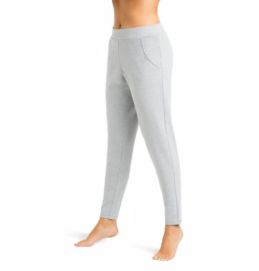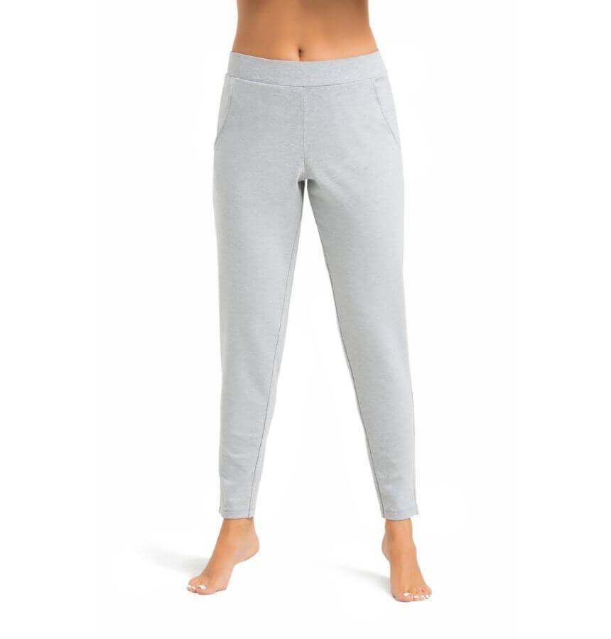 Spodnie damskie piżamowe, dresowe w kolorze szarym.