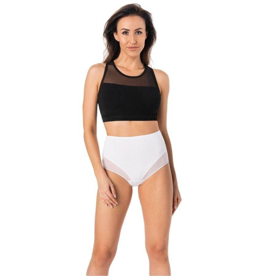 Majtki damskie z wysokim stanem. Posiadają prosty klasyczny fason. Wykonane są z wysokiej jakości przewiewnej i delikatnej bawełny, miłej dla kobiecego ciała i w dotyku, z dodatkiem elastycznego włókna lycry, które gwarantuje dobre dopasowanie się majtek do sylwetki. Ponadto włókno lycry zagwarantuje, że majtki nie zdeformują się po praniu, zachowają swój pierwotny wygląd.