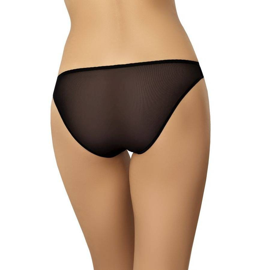 Klasyczne majtki Agil z niskim stanem, wykonane z przezroczystej siatki bez dodatku ozdobnej koronki. Przy udach znajdują się wykończenia z gumek, które ze względu na swoją elastyczność, doskonale dopasowują się do nóg, nie uwierając i nie przecinając pośladków. Majtki z siateczki są bardzo wygodne i uniwersalne, a także podkreślają kobiecość.