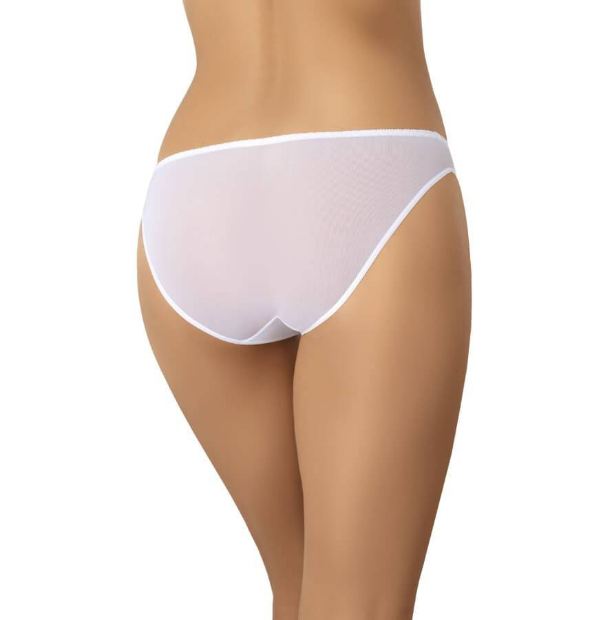 Klasyczne majtki Agil z niskim stanem, wykonane z przezroczystej siatki bez dodatku ozdobnej koronki. Przy udach znajdują się wykończenia z gumek, które ze względu na swoją elastyczność, doskonale dopasowują się do nóg, nie uwierając i nie przecinając pośladków. Majtki z siateczki są bardzo wygodne i uniwersalne, a także podkreślają kobiecość.