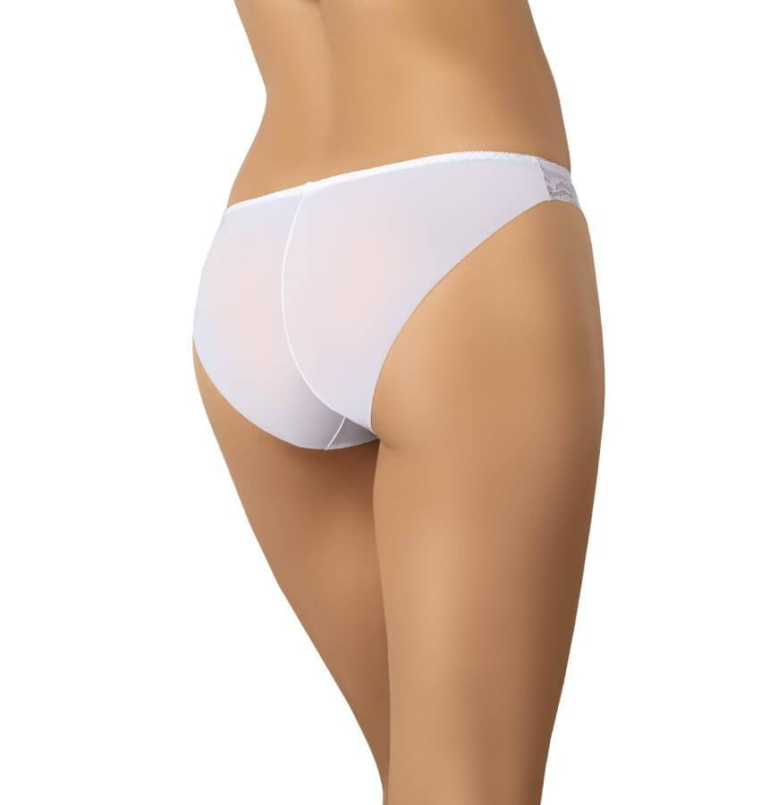 Damskie majtki klasyczne wykonane z bardzo delikatnej i przyjemnej w dotyku siatki. Tył wykonany jest z podwójnej siatki, bezszwowy. Dzięki takiemu wykończeniu doskonale sprawdzają się pod dopasowane sukienki lub spodnie, ponieważ nie odznaczają się pod ubraniem. Są przy tym niebywale wygodne, ładnie eksponują pośladki, nie kryjąc ich.