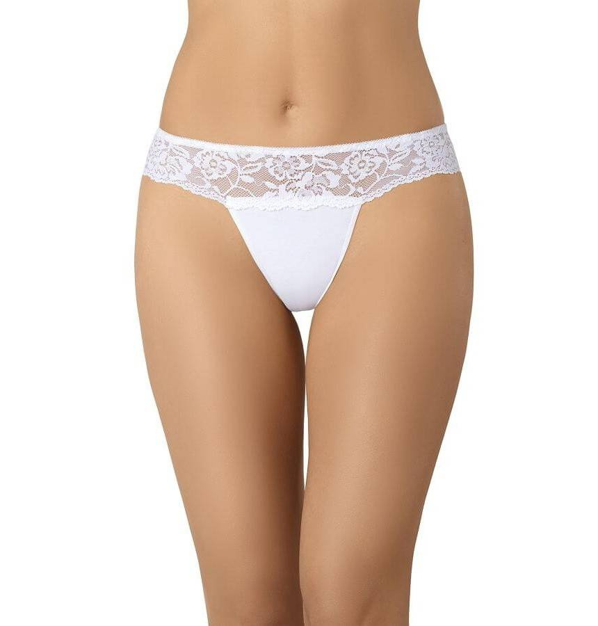 Damskie stringi wykonane z koronki, która znajduje się w górnej części i połączona jest z siateczką podszytą bawełną w okolicach kroku i z tyłu. Majteczki są niezwykle seksowne i bardzo efektowne.