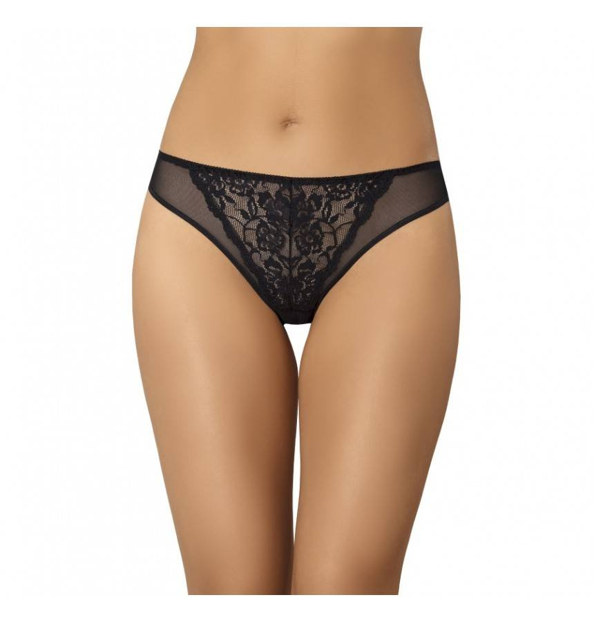 Elastyczna siatka ładnie odznacza się na pośladkach, a po wypraniu wraca do swojego pierwotnego wyglądu. Siatka jest połączona z koronką o drobnym motywie kwiatowym i zdobi przód majtek, nadając im eleganckiego wyglądu.