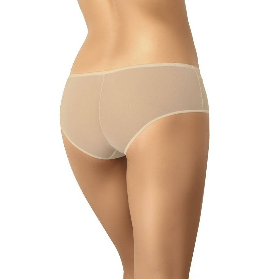 Szorty damskie wykonane z wysokiej jakości siateczki, niewykończonej gumką, dzięki czemu majtki sprawdzą się idealnie pod dopasowane ubrania.