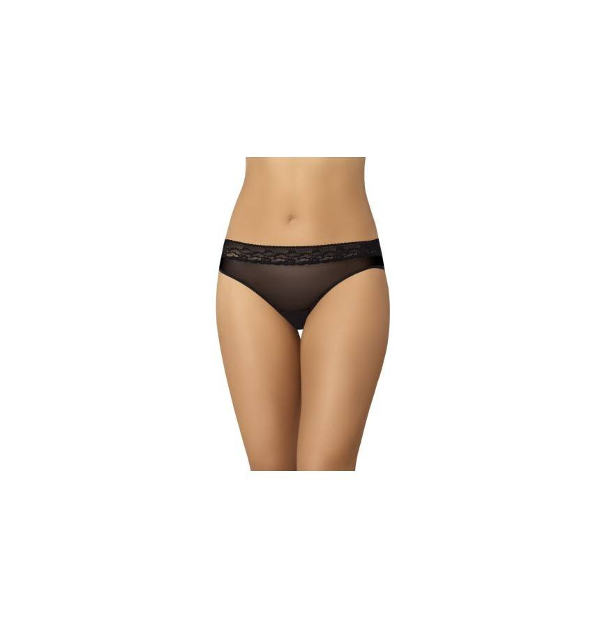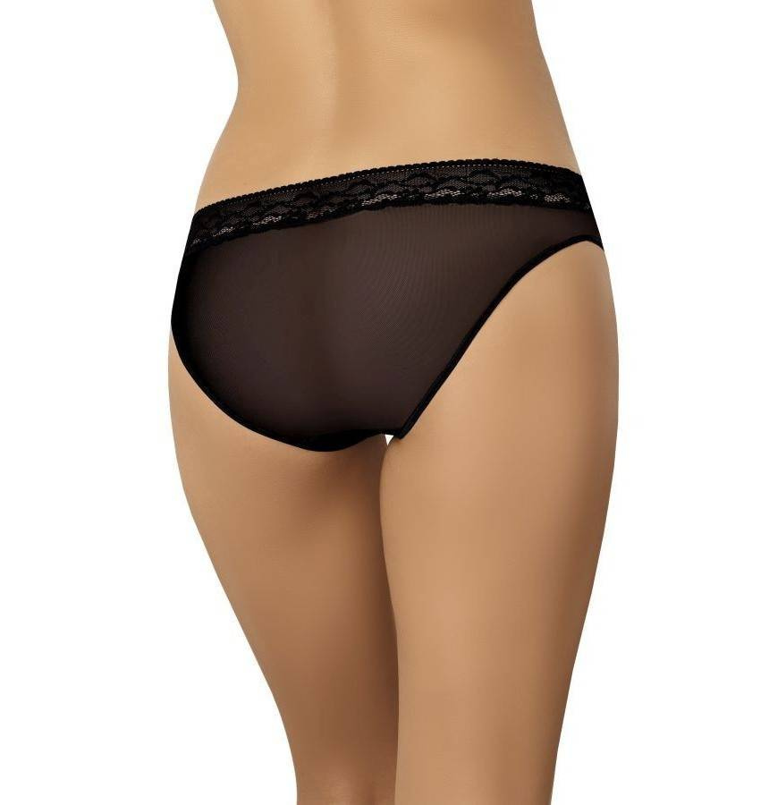 Majteczki mają niższy stan. Z tyłu oraz z przodu przeźroczysta siatka ładnie eksponuje pośladki, a całość jest bardzo efektownie połączona. Wokół nóg figi wykończone są cienkimi gumkami, które są elastyczne, delikatne oraz przyjemne w dotyku.