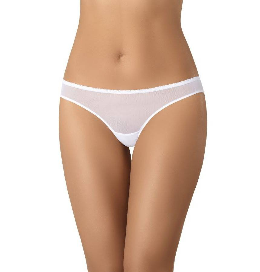 Z tyłu całe wykonane są z przyjemnej w dotyku koronki o dużych motywach kwiatowych. Z kolei przód majteczek wykonany jest z bardzo delikatnej, prześwitującej siatki. Połączenie tych dwóch materiałów nadaje niezwykle efektowny wygląd, a koronka i cienka siateczka kuszą swym urokiem.
