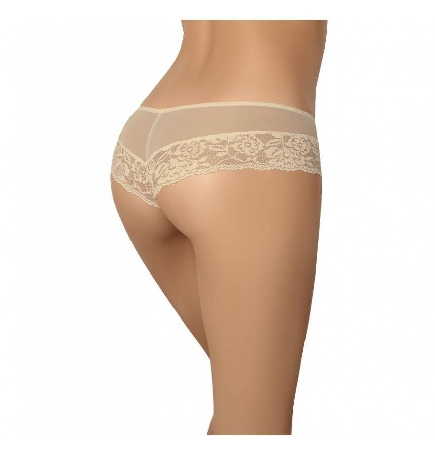 Z przodu i na pośladkach łączone są z elegancką i elastyczną miłą dla kobiecego ciała koronką która efektownie układa się na pośladkach i eksponuje pupę.