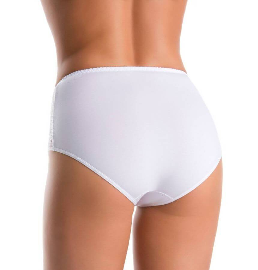 Uszyte są z najwyższej jakości, przyjemnej bawełny miłej w dotyku i delikatnej dla kobiecego ciała. Z przodu figi ozdobione są koronkowymi szerokimi wstawkami o delikatnym motywie różanym. To zestawienie idealnie się komponuje.
