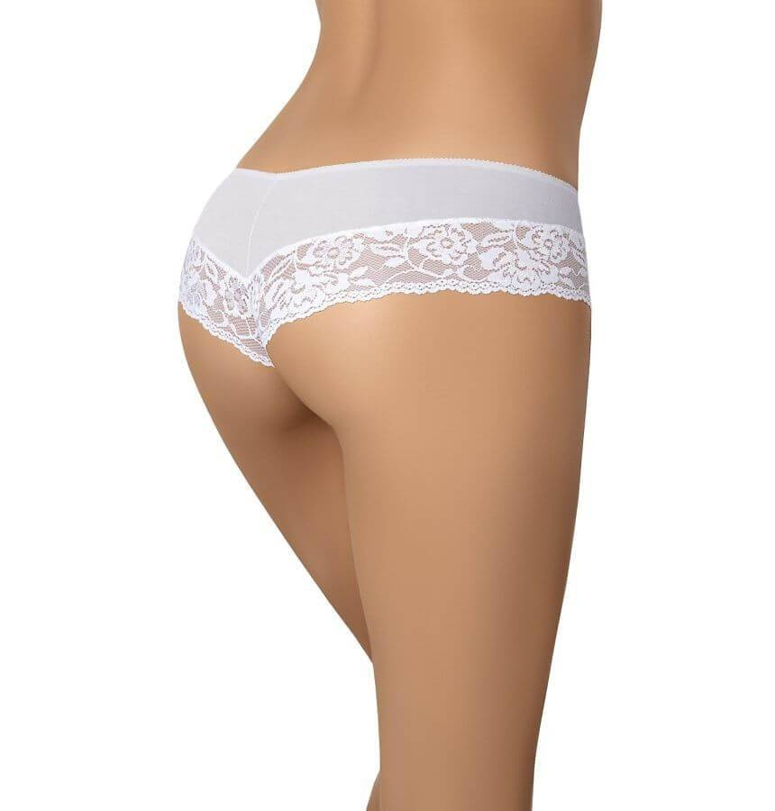 Figi wykonane z bawełny i koronki o kroju brazylian, doskonale eksponują pośladki. Dół jest wykończony koronką o motywie kwiatowym, koronki wykończone są bez użycia gum, co sprawia, że brazyliany doskonale nadają się pod dopasowane ubrania i nie będę widoczne pod spódnicą, spodniami bądź sukienką.