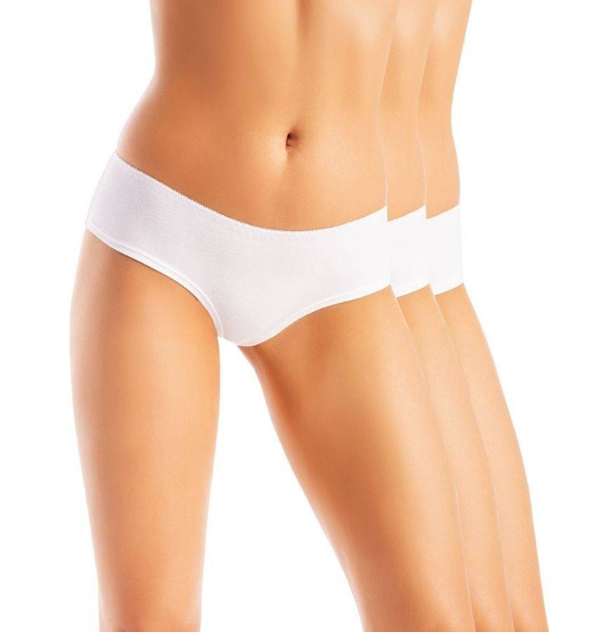 Zestaw trzech par majtek w opakowaniu daje możliwości do dopasowania koloru bielizny do wierzchniej odzieży.