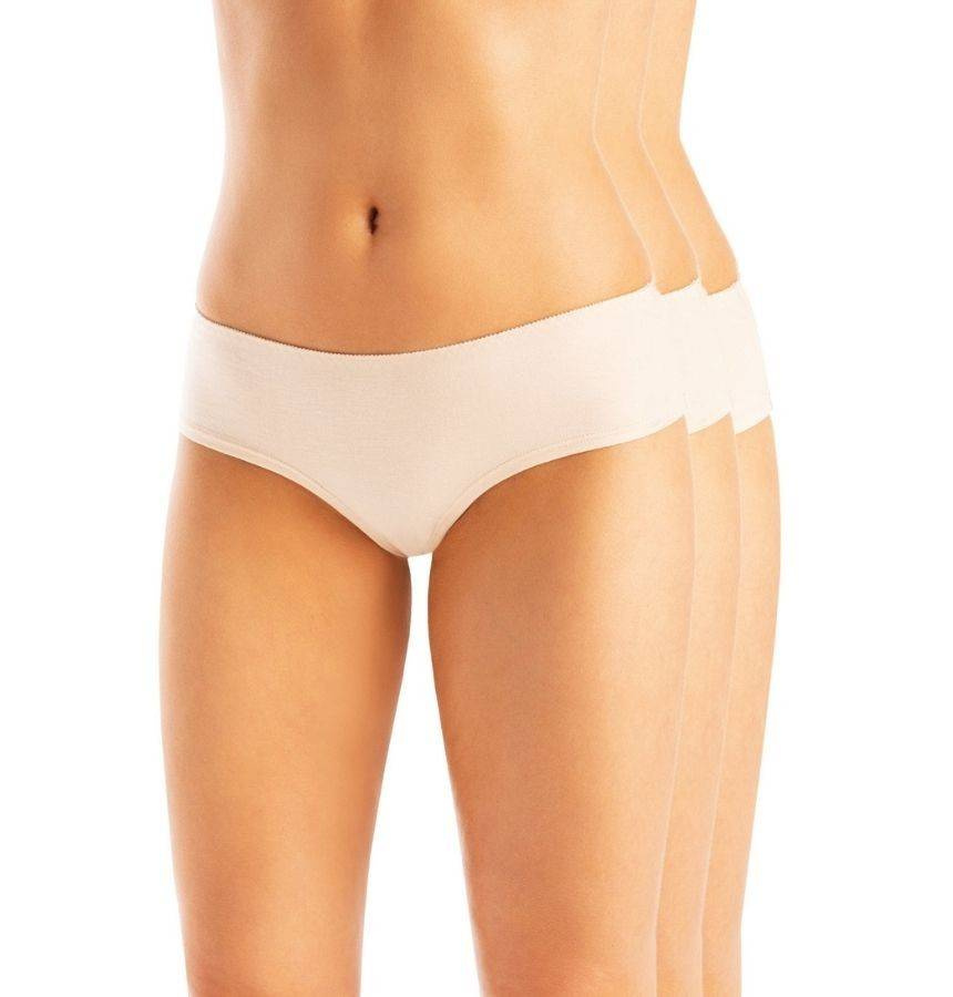Zestaw trzech par majtek w opakowaniu daje możliwości do dopasowania koloru bielizny do wierzchniej odzieży.
