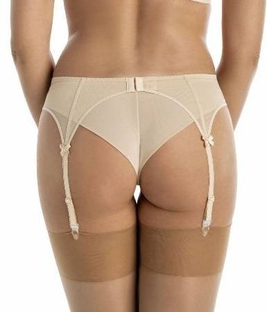Pas jest mało zabudowany, posiada około trzech, czterech centymetrów szerokości nie posiada zdobień koronkowych. Jedyne zdobienia znajdują się  na czterech cienkich paskach, które służą do podtrzymania pończoch, to delikatne atłasowe kokardeczki.