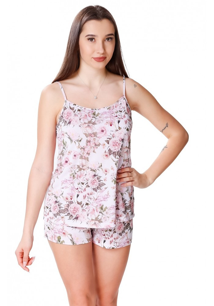 86463 Kamelia Piżama damska na ramiączkach Mewa różowe kwiaty