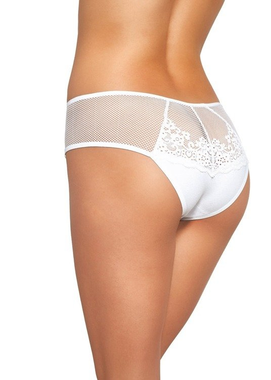 Figi damskie wykonane z wysokiej jakości wyjątkowo miłej i miękkiej bawełny. Górna część z siateczki ozdobionej koronką o kwiatowym motywie.
