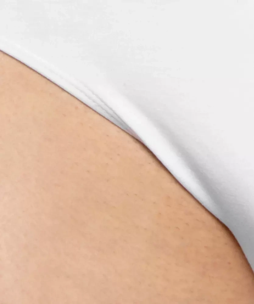 2-pack slipów w kolorze białym z wygodną gumą zewnętrzną w talii. Bardzo wysoko podkrojone wokół ud, niska talia. Wykonane są z niezwykle miękkiej, wręcz jedwabistej w dotyku bawełny Pima.