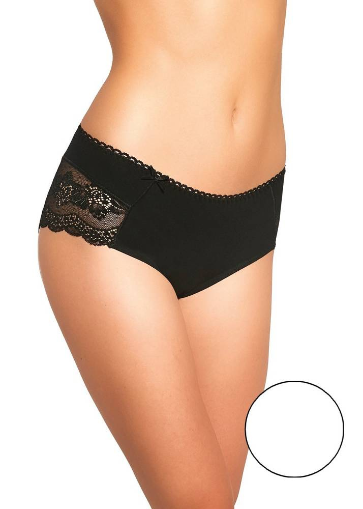 Koronkowe szorty o klasycznym kroju. Model z delikatnej bawełny. Z przodu i z tyłu wstawki z delikatnej koronki. Zabudowane na biodrach. Model pakowany w pudełko.