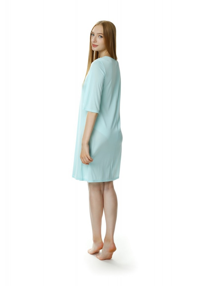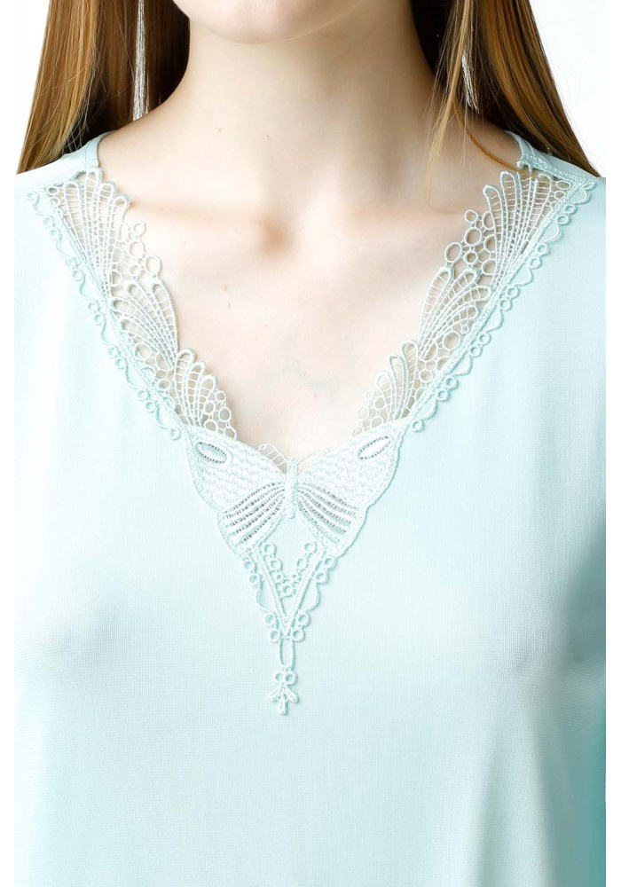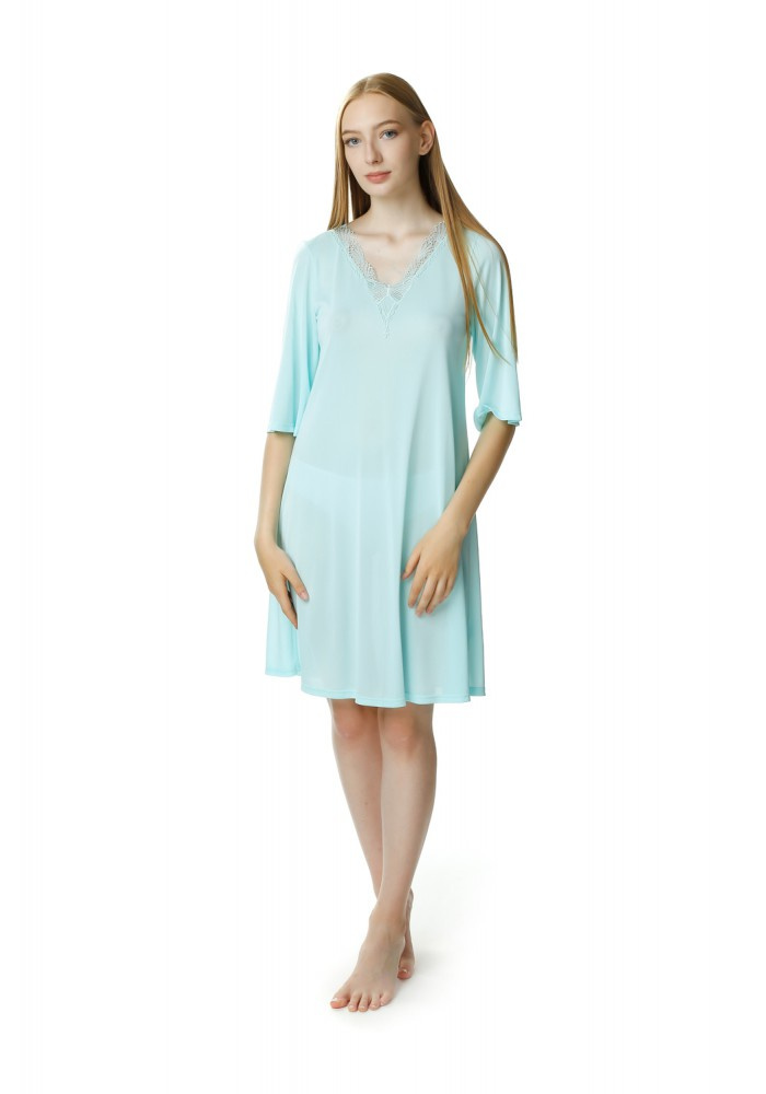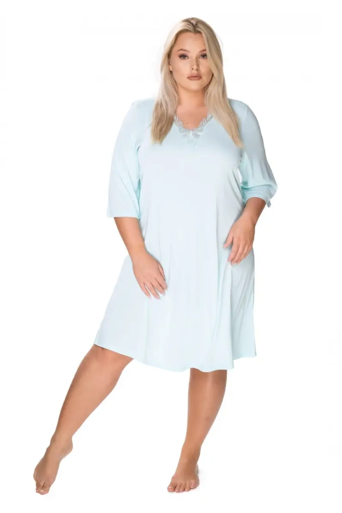 Model Elena posiada długość "za kolano" oraz wygodny rękaw 3/4. Dekolt został ozdobiony uroczą koronką. Luźny, zwiewny fason pozwala na dużą swobodę ruchów. Z pewnością spodoba się także Paniom plus size.